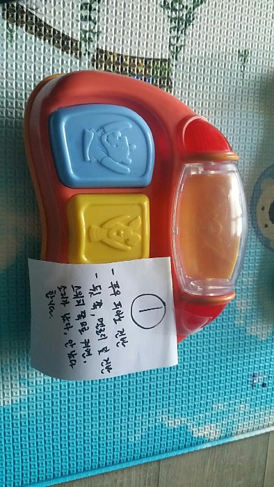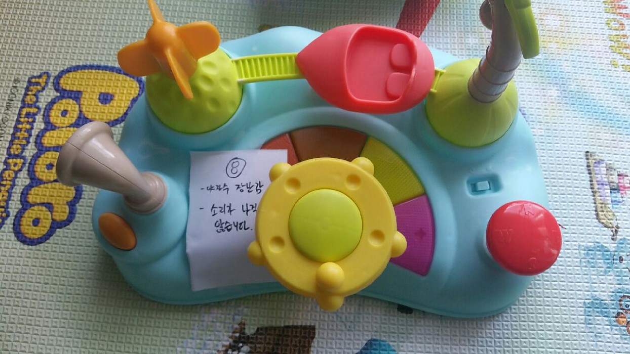 장난감 뒷 쪽, 멜로디 및 건반 쪽으로 스위치를 제치면 소리가 났다 안났다 합니다. 수리내용